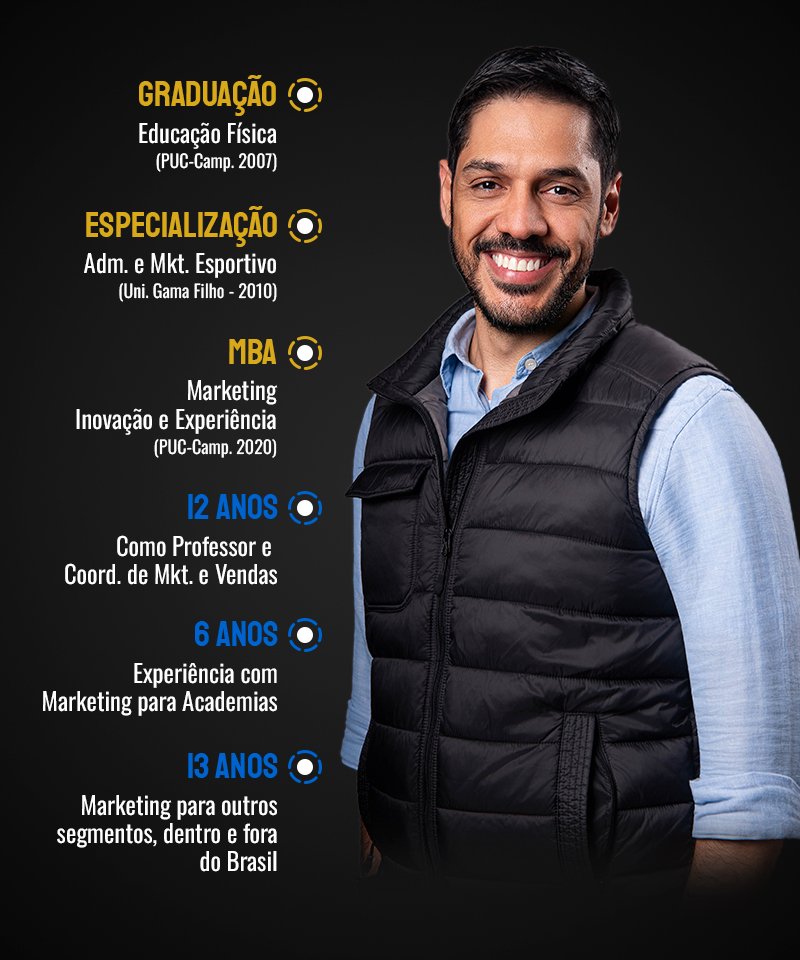 Nosso método exclusivo foi desenvolvido a partir de experiências práticas em academias e consultorias, no Brasil e no exterior, oferecendo estratégias comprovadas para o sucesso, agora, inteiramente focada para academias.